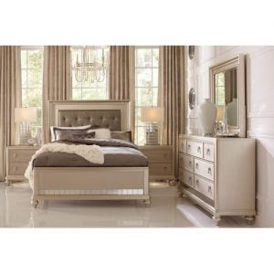 SAZ FULL BEDROOM SET OF 6 BY 7 BED, MIRROR DRESSER, BEDSIDE & CONSOLE TABLE